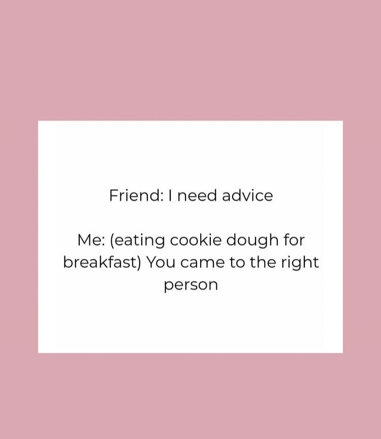 Random question related to the meme: do you eat raw cookie dough, or no? It’s a hard no for me. I used to do it all the time, but a few years ago I ate some and had digestive issues for a week after. Never again!