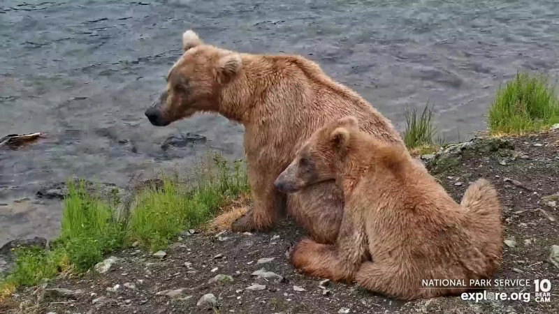 Finally: here's a pic for you! Fat Bears are back! The bear cams have turned on for the season, and I spend every moment of downtime watching them (so if I don't respond to you; it's because I'm watching bears). We got a real treat in seeing Mama Grazer and her babies immediately when the cams turned on. Aren't they just the best ?π If you too want to become obsessed with Brooks Falls brown bears, here is a link to the cams to go watch them: https://explore.org/livecams/brown-bears/brown-bear-salmon-cam-brooks-falls Should you feel up to it, you can also sign up for an Explore.org account, and take snapshots from the cams! If you wish to do so, share them! I love bear snapshots!