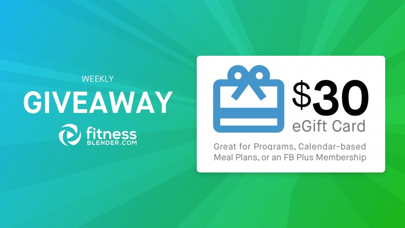 Our (randomly chosen) Giveaway winners this week will each receive a free Fitness Blender eGift Card, which you can use to purchase FB Plus, Workout Programs, or our calendar-based Meal Plan.