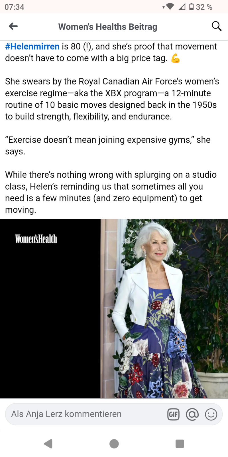 I just saw this (see attached image) and wonder if someone could do a Helen Mirren-inspired video please? Or rather, it would be RAF inspired, I guess. There's a women's health link, too, which I'll post in the comments because I don't want to direct traffic to them instead of to here.
